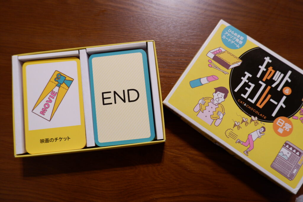 キャット&チョコレートは、アドリブ力や発想力を活かせるカードゲームです。かわいいイラストで遊びやすいので、子どもから大人まで楽しく遊べます。