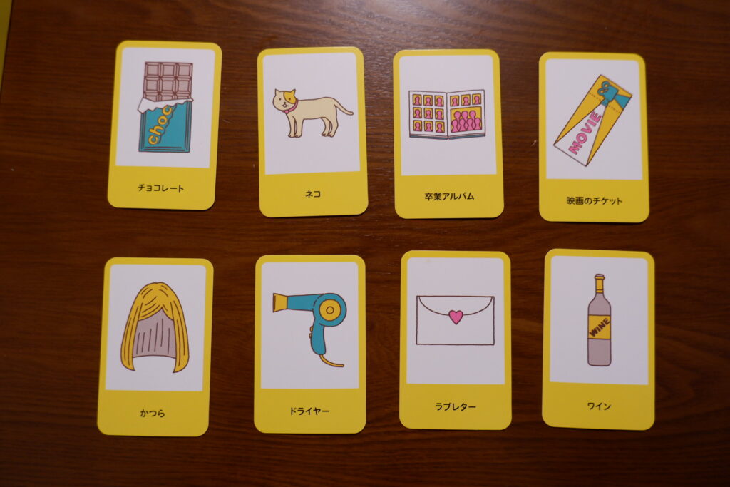 場に出すアイテムカードは、2人が話者・聞き手を1回ずつ行うごとに入れ替えるのがおすすめです。