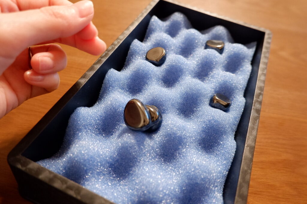 かなり強力なマグネットなので、ルールにこだわらず、ただ石をいじったり並べていったりするだけでも楽しいです。