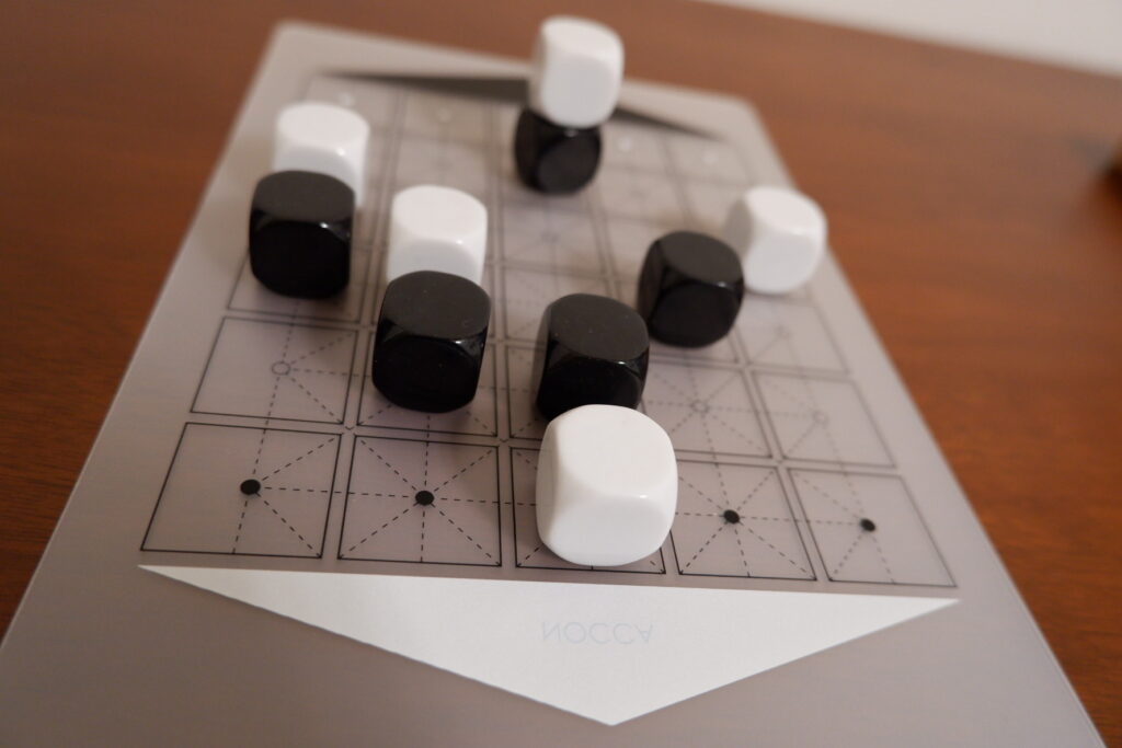 NOCCA×NOCCA(ノッカノッカ)は、将棋が立体化したようなシンプルで感覚的に遊べるゲームです。1プレイ5分で遊ぶことができ、パッと熱中できるので私たち夫婦もよく遊んでいます。